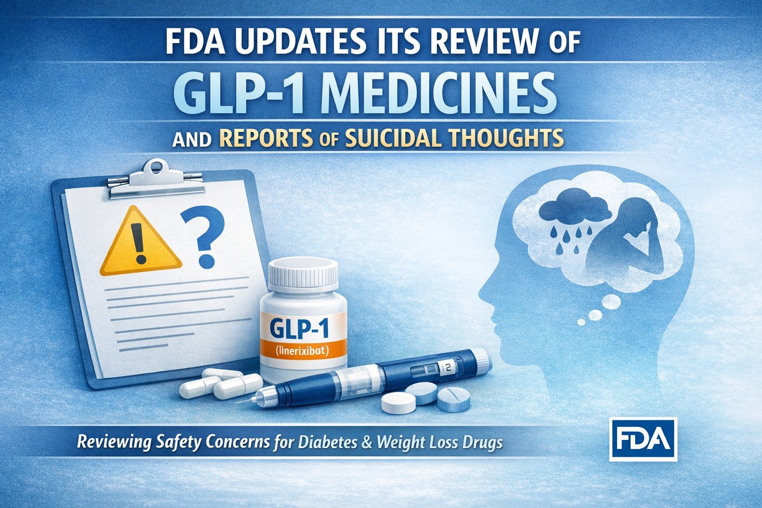 The U.S. Food and Drug Administration (FDA) has shared new findings from its ongoing review of reports of suicidal thoughts or actions among people taking GLP‑1 receptor agonists — medicines commonly used for type 2 diabetes and weight management.